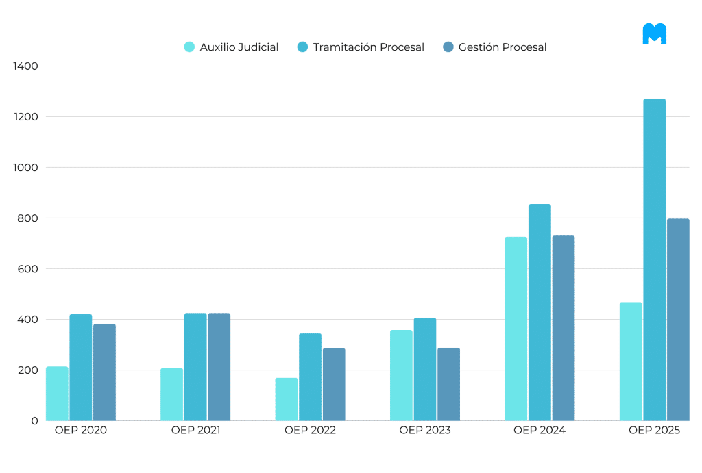 Cada año, la Oferta de Empleo Público incluye nuevas plazas para los Cuerpos Generales de Justicia: Auxilio Judicial, Tramitación Procesal y Gestión Procesal. Esto significa que, si estás pensando en opositar, tienes una nueva oportunidad anual para conseguir tu plaza.